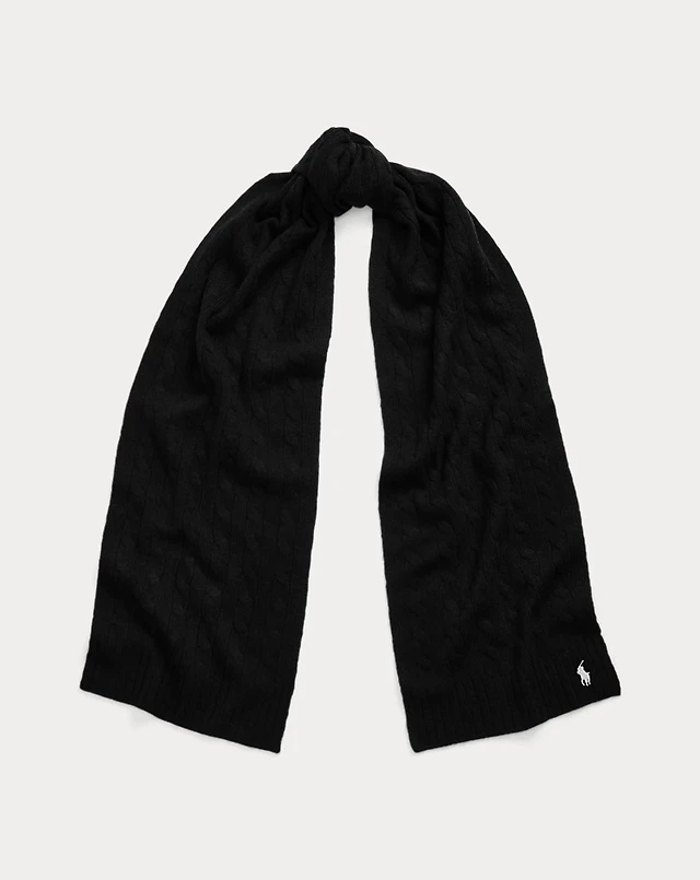 Dark Blue Scarf Ribbed Knit Cashmere Blend