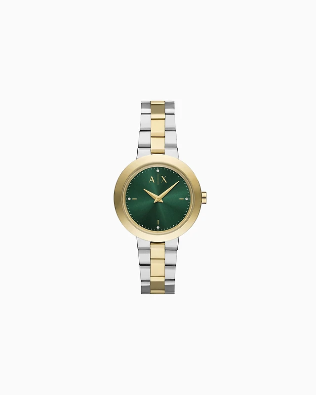 Green-dial watch in gold-tone steel