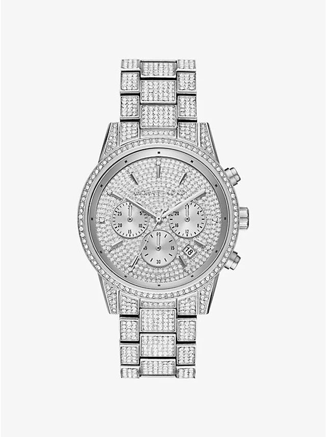 Mini Bryant Pavé Logo Silver-Tone Watch