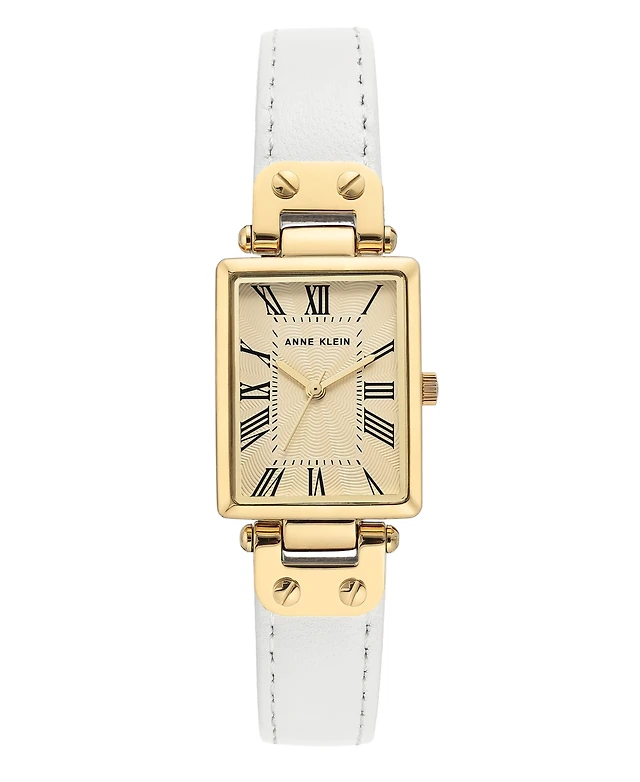 Anne Klein Gold-Tone and White Leather Strap Watch 21.5mm