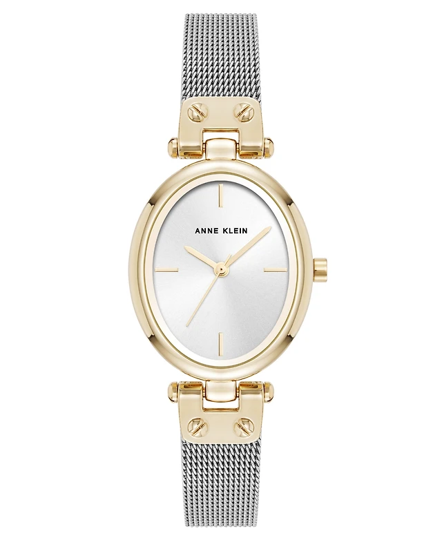 Anne Klein Women's Quartz Continental Oval Two-Tone Stainless Steel Mesh Band Watch, 26mm