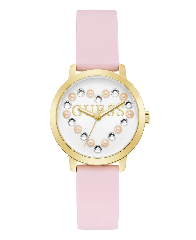 Guess Women's Gold-Tone Pink Silicone Analog Watch, 36mm