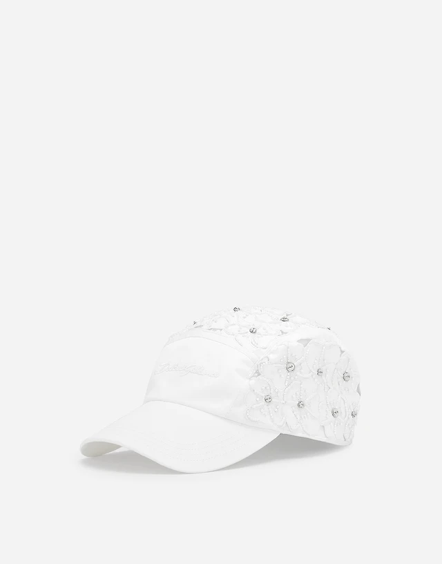 Cotton jacquard baseball cap with a peony print and Dolce&Gabbana logo embroidery