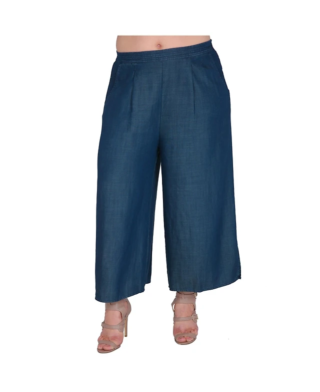 Ellen Tracy Women's Linen Smocked Wide Leg Pant