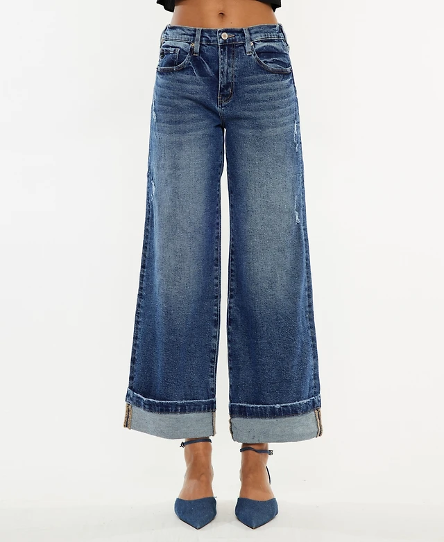 Madden Girl Juniors' Roll-Cuff Barrel-Leg Jeans