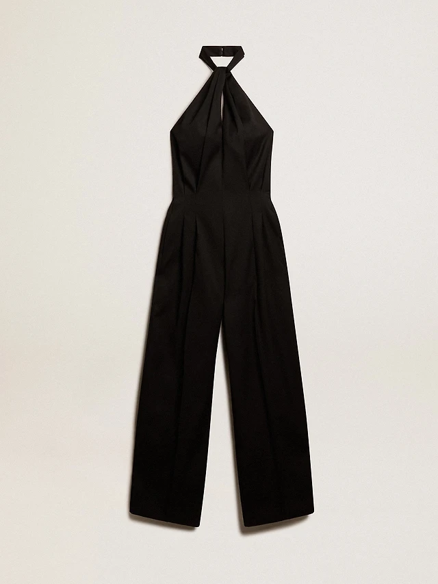 Women's worn-white cotton vest dress with dark blue ribbing and crystals
