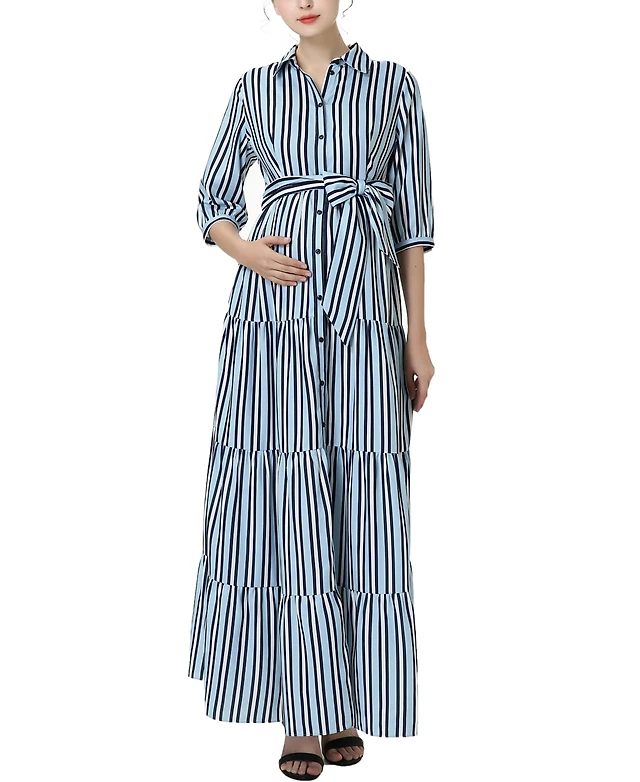 kimi + kai Maternity Button Front Nursing Maxi Shirt Dress