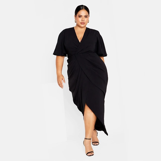 Eloquii Women's Plus Cross Front Flutter Sleeve Dress