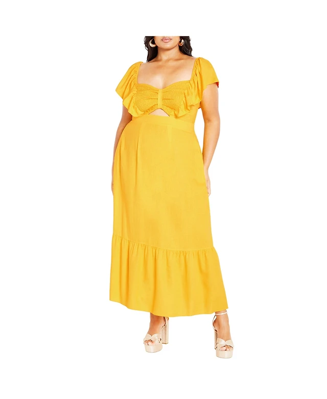 Eloquii Women's Plus Asym Ruffle Maxi Dress