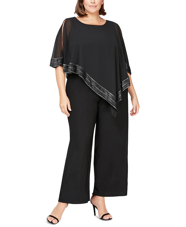 Alex Evenings Plus Velvet Embellished Side-Ruffle Dress