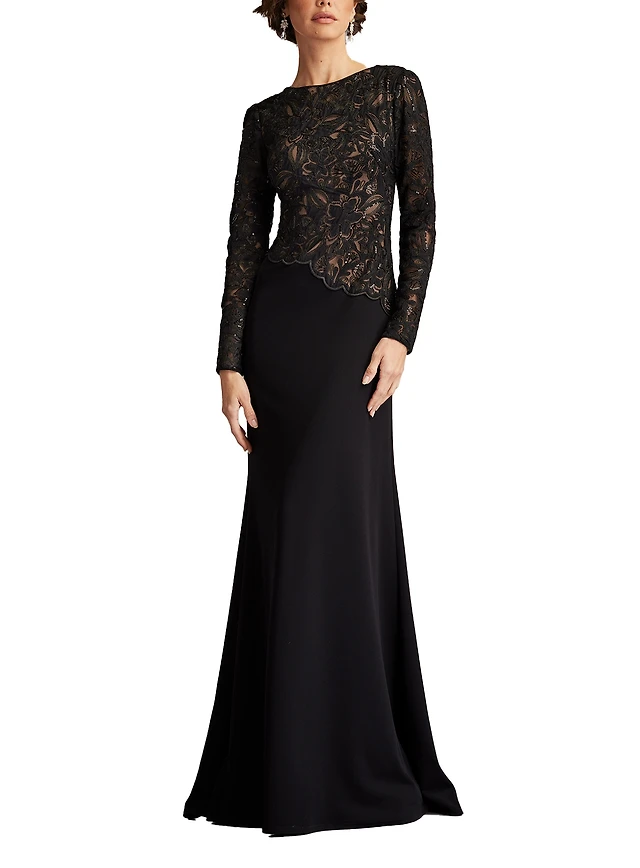 Betsy & Adam Women's Beaded-Sleeve Ruched Gown