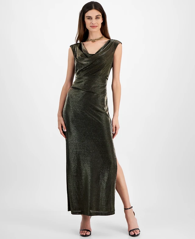 Siena Women's V-Neck Sleeveless Foiled Bandage Knit Dress