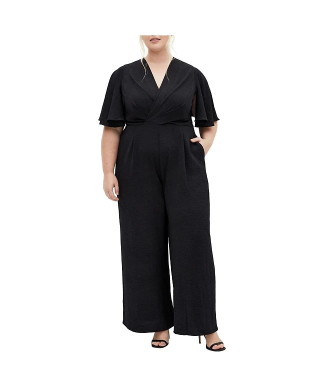R & M Richards Women's Asymmetric Rhinestone-Trim Draped Jumpsuit