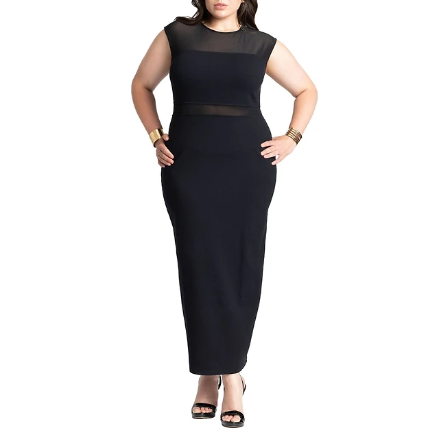 Eloquii Women's Plus Tulle Flounce Sequin Column Dress