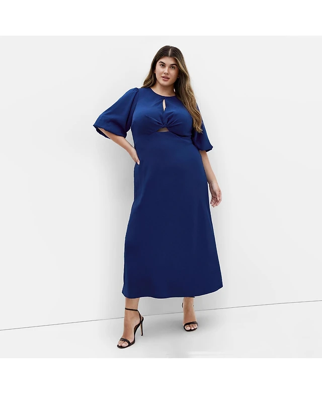 Eloquii Women's Plus Shirred Strong Shoulder Tie Detail Dress