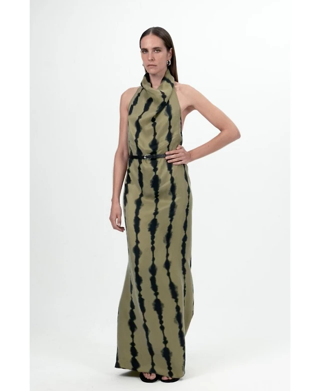 Nocturne Women's Belt Detailed Printed Maxi Dress