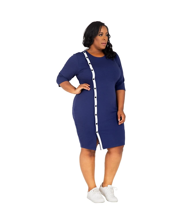 Siena Plus Puff-Sleeve Asymmetric-Hem Midi Dress