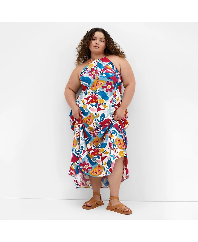 CeCe Women's Printed Tie-Wait Sleeveless Maxi Dress