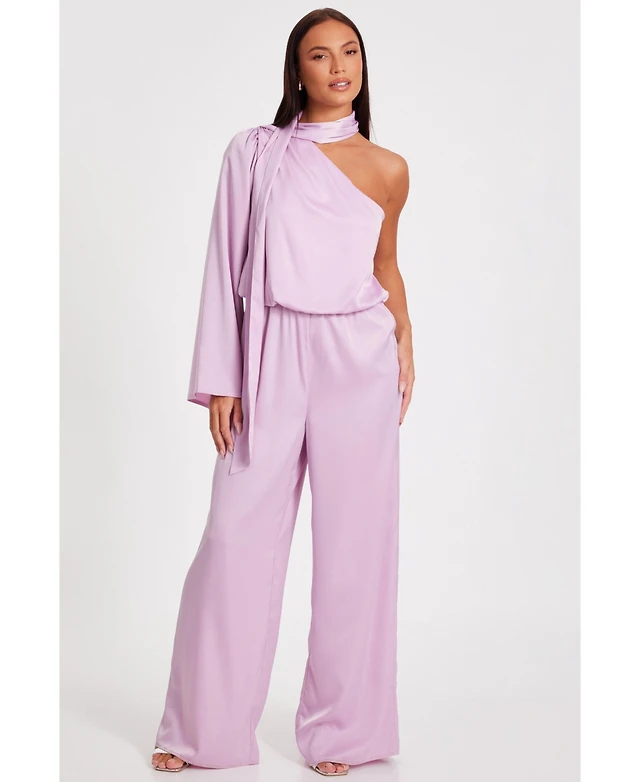 Quiz Women's One Sleeved Satin Jumpsuit With Scarf Detail
