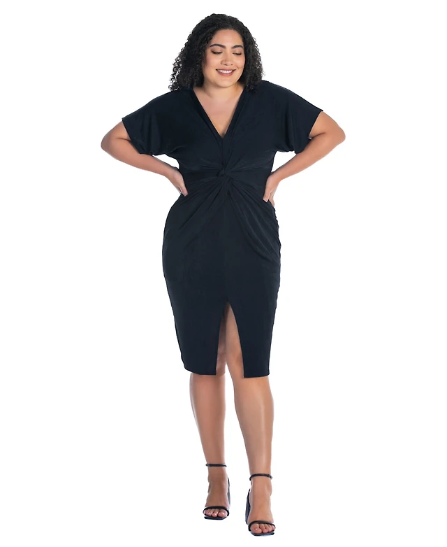 24seven Comfort Apparel Plus Short Sleeve V-Neck Twist Front Split Hem Dress