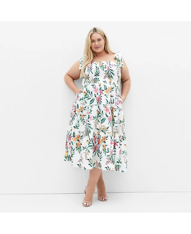 Lucky Brand Women's Printed Smocked-Waist Sleeveless Midi Dress