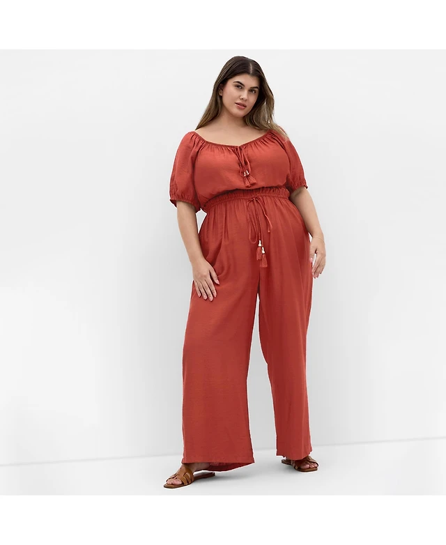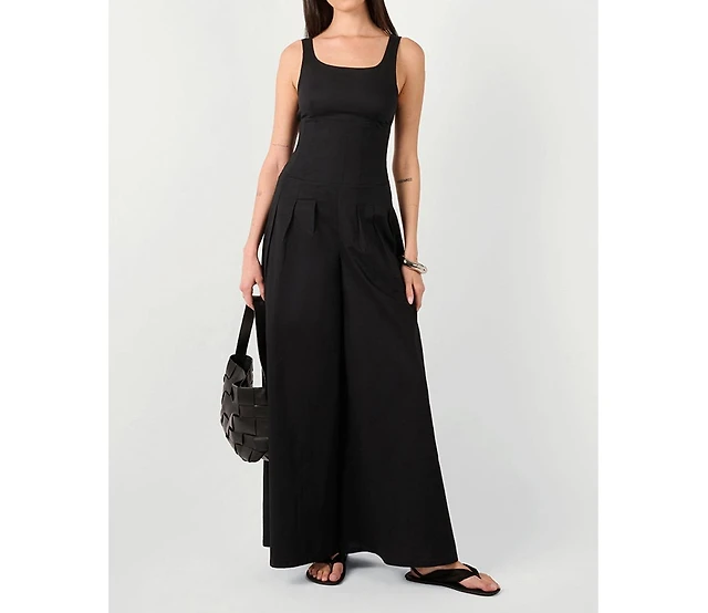 CeCe Women's Tie Strap Smocked Bodice Jumpsuit