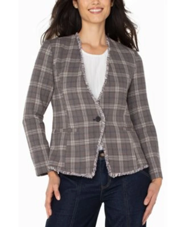 Liverpool Los Angeles Womens Collarless Fray Trim Fitted Blazer Pxs Xl