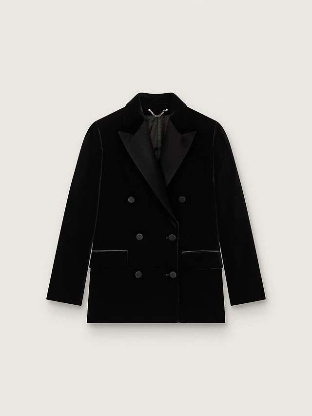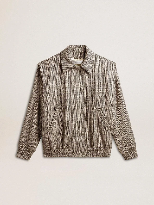 Double-breasted wool boyfriend jacket micro houndstooth and sequins