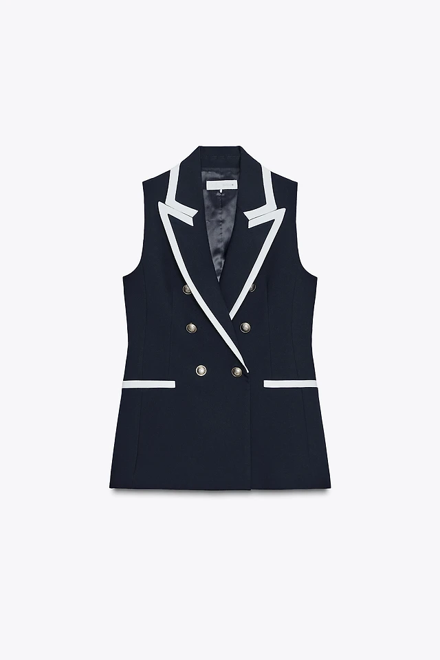 DOUBLE BREASTED BLAZER WITH TABBED SLEEVES