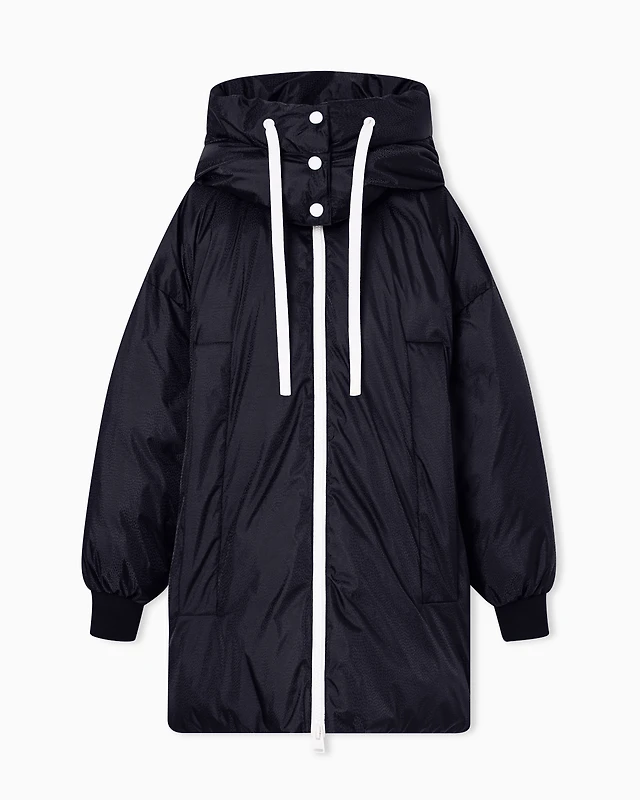 Water-repellent padded coat with tie-up belt