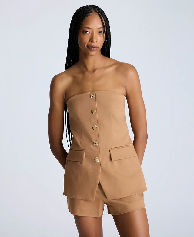 Guess Womens Camille Sleeveless Buttoned Vest Tailored Pleat Front Shorts