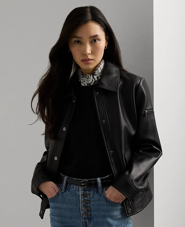 Lauren Ralph Women's Fleece-Collar Faux-Leather Jacket
