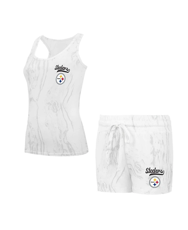 Concepts Sport Women's Pittsburgh Steelers Gauge Allover Print Cropped Tank Top Shorts Sleep Set