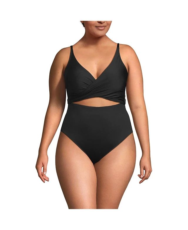 Lands' End Women's Plus Wrap Monokini High Leg One Piece Swimsuit