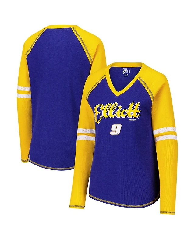 G-iii 4Her by Carl Banks Women's Royal Chase Elliott Winner Tri-Blend V-Neck Long Sleeve T-Shirt