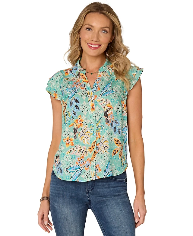 CeCe Women's Floral Print Flutter-Sleeve Blouse