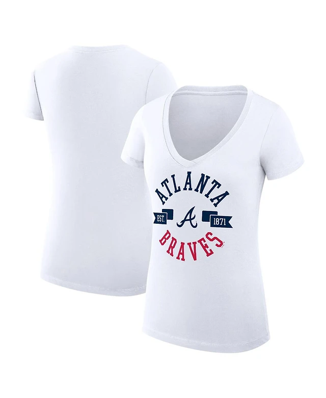 G-iii 4Her by Carl Banks Women's White Atlanta Braves City Graphic V-Neck Fitted T-Shirt