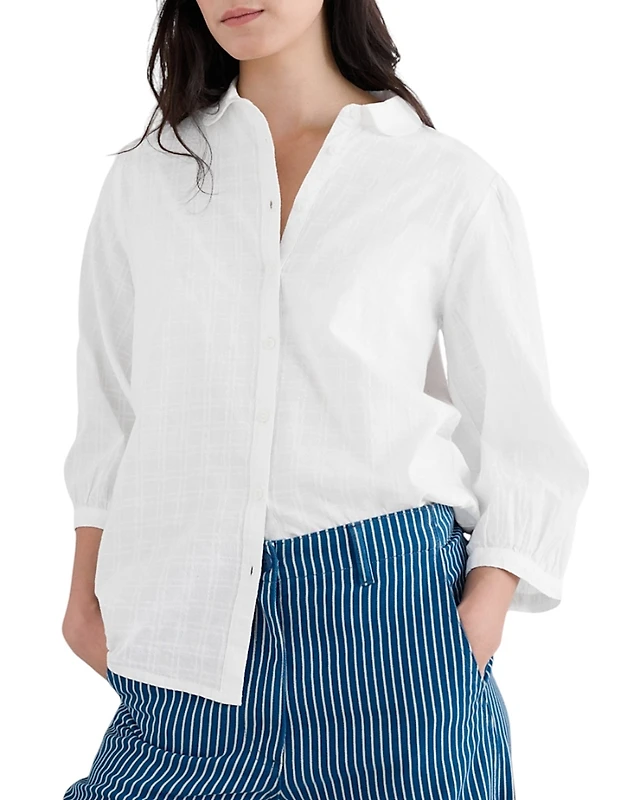 Relaxed Cotton Dobby Shirt With Wide Sleeves