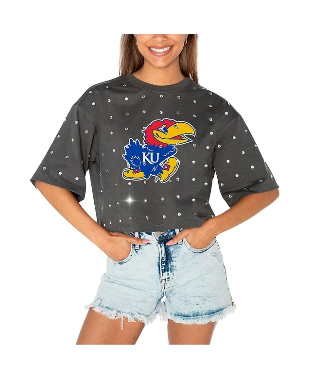 Gameday Couture Women's Gray Kansas Jayhawks Go Time Rhinestone Crop T-Shirt