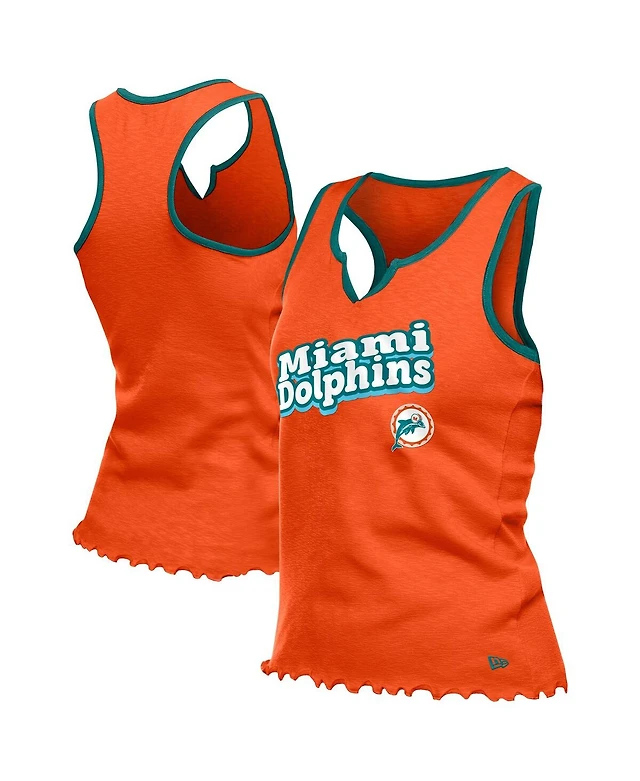 New Era Women's Orange Miami Dolphins Lettuce Hem Notch Neck Tri-Blend Tank Top