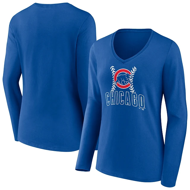 Women's Royal Chicago Cubs Fastball Long Sleeve V-Neck T-Shirt