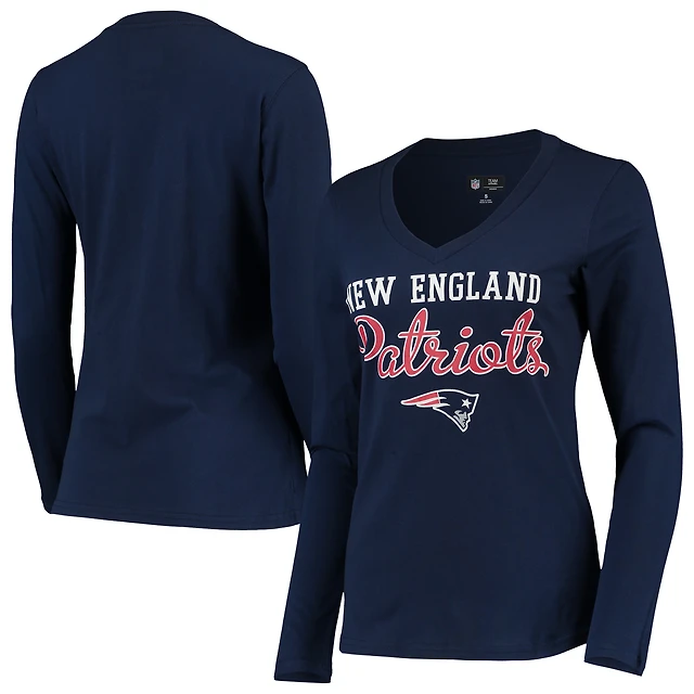 Women's G-III 4Her by Carl Banks Navy New England Patriots Post Season Long Sleeve V-Neck T-Shirt