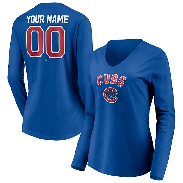 Women's Royal Chicago Cubs Personalized Winning Streak Name & Number Long Sleeve V-Neck T-Shirt