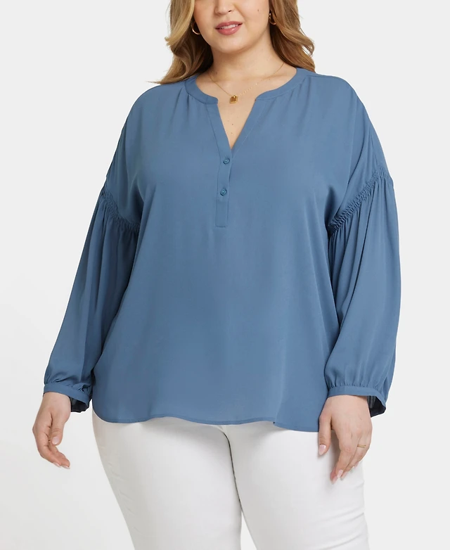 Ny Collection Plus Long Roll Tab Sleeve Pintuck Front Blouse
