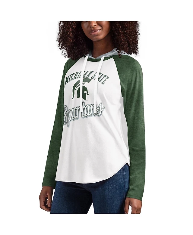 Women's G-iii 4Her by Carl Banks White, Green Michigan State Spartans From the Sideline Raglan Long Sleeve Hoodie T-shirt
