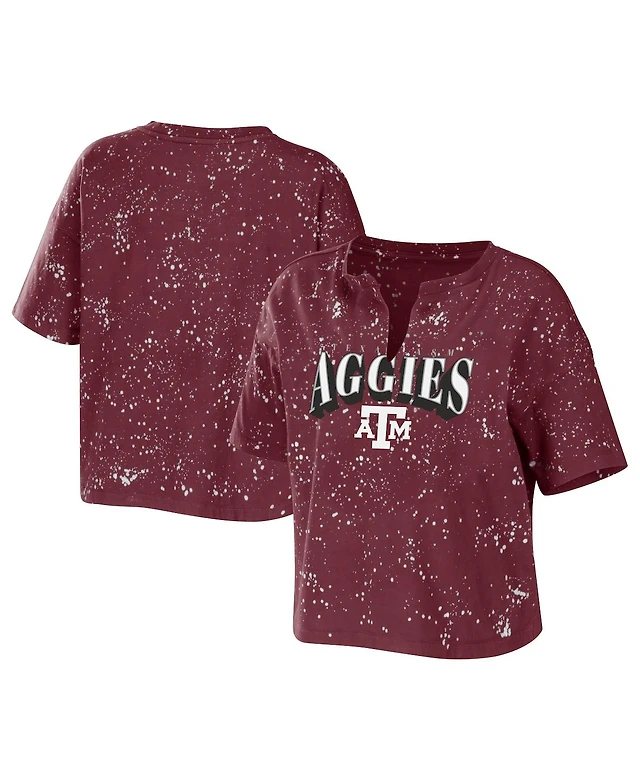 Women's Wear by Erin Andrews Maroon Texas A&M Aggies Bleach Wash Splatter Cropped Notch Neck T-shirt