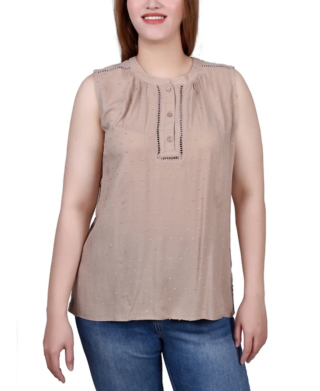 Ny Collection Petite Sleeveless Swiss Dot Blouse Top