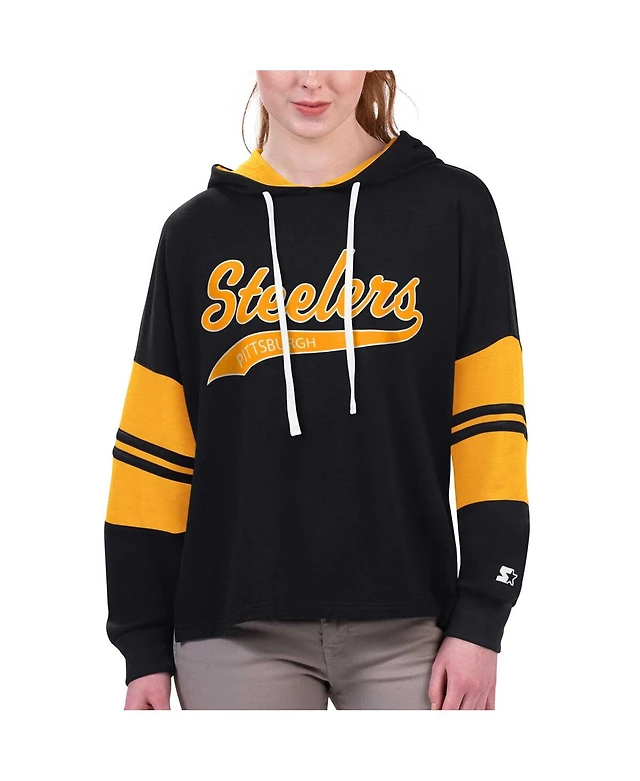 Women's Starter Black Pittsburgh Steelers Bump And Run Long Sleeve Hoodie T-shirt