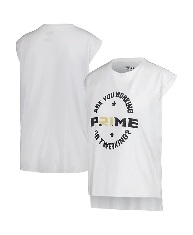 Wear by Erin Andrews Women's White Colorado Buffaloes Coach Prime Working Sleeveless Muscle T-Shirt