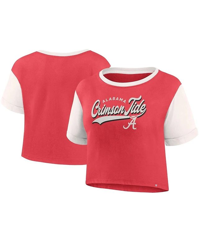 Fanatics Women's Crimson/White Alabama Crimson Tide Oversized Badge Color block Cropped T-Shirt